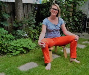 Hurkend op de baarkruk